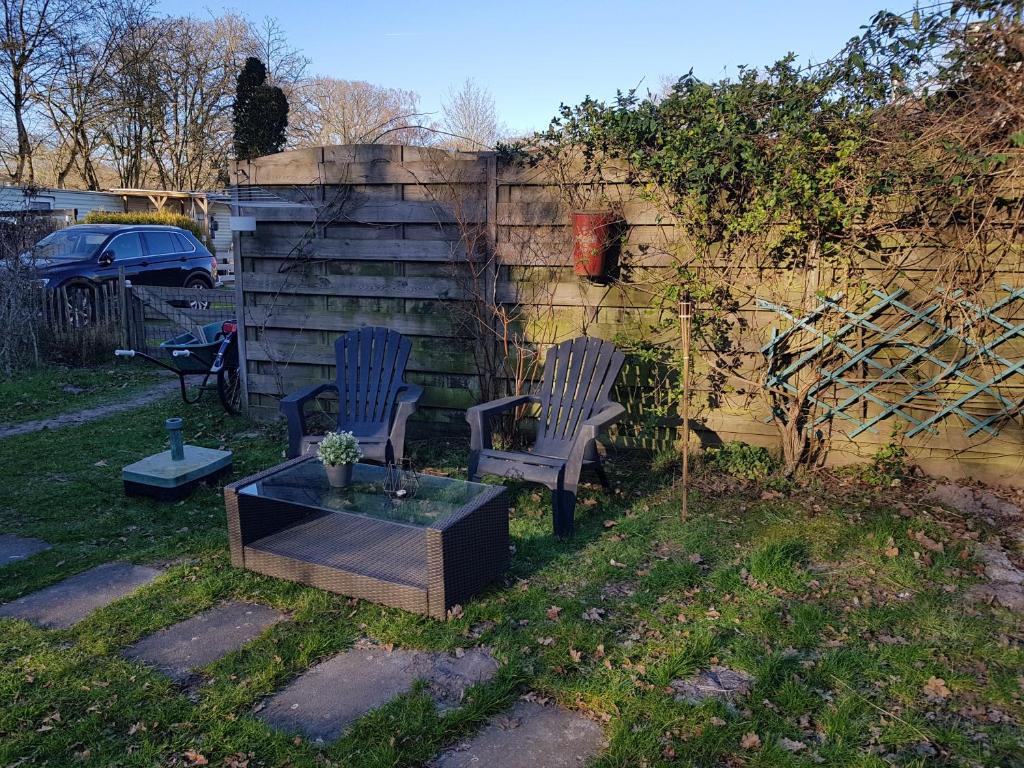 De camping heeft een terras en een tuin.